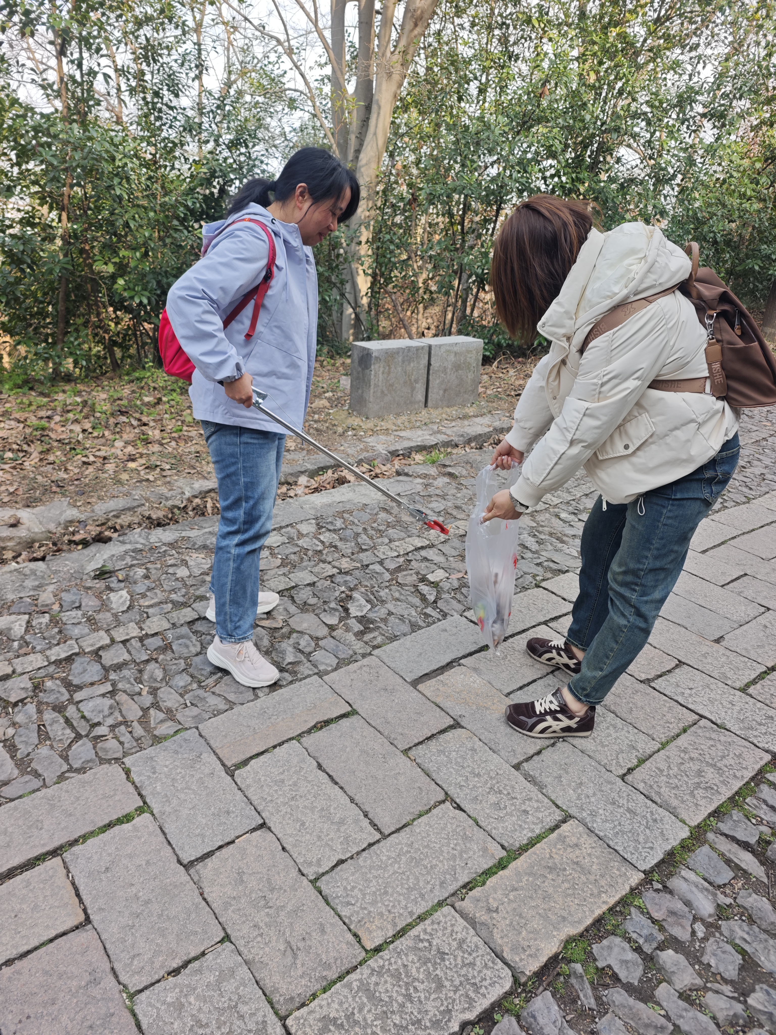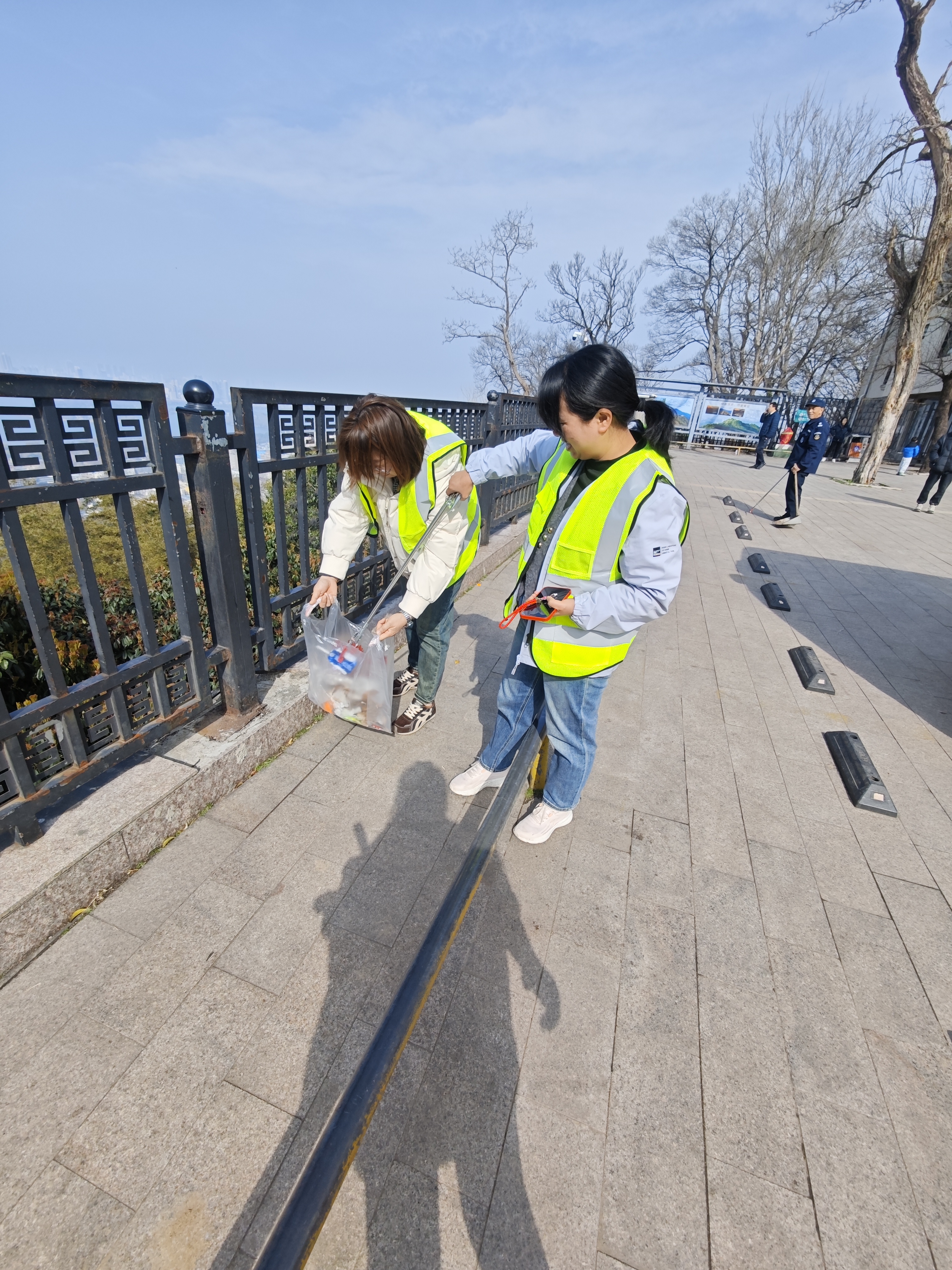 上午8時30分,大家準時在太平門白馬公園廣場集結。領隊送上溫馨的節日祝福后,女員工們領取手套、垃圾夾和垃圾袋,整裝待發。迎著春日暖陽,“南京蘇商環保臨時小隊”沿著白馬公園至紫金山天文臺的路線拾級而上。大家一邊欣賞山間春色,感受春風拂面,一邊化身環保志愿者,認真清理山路兩側的煙頭、紙屑、塑料瓶等各類垃圾,不放過任何一個衛生死角,用實際行動為紫金山的綠水青山增添一抹亮色。