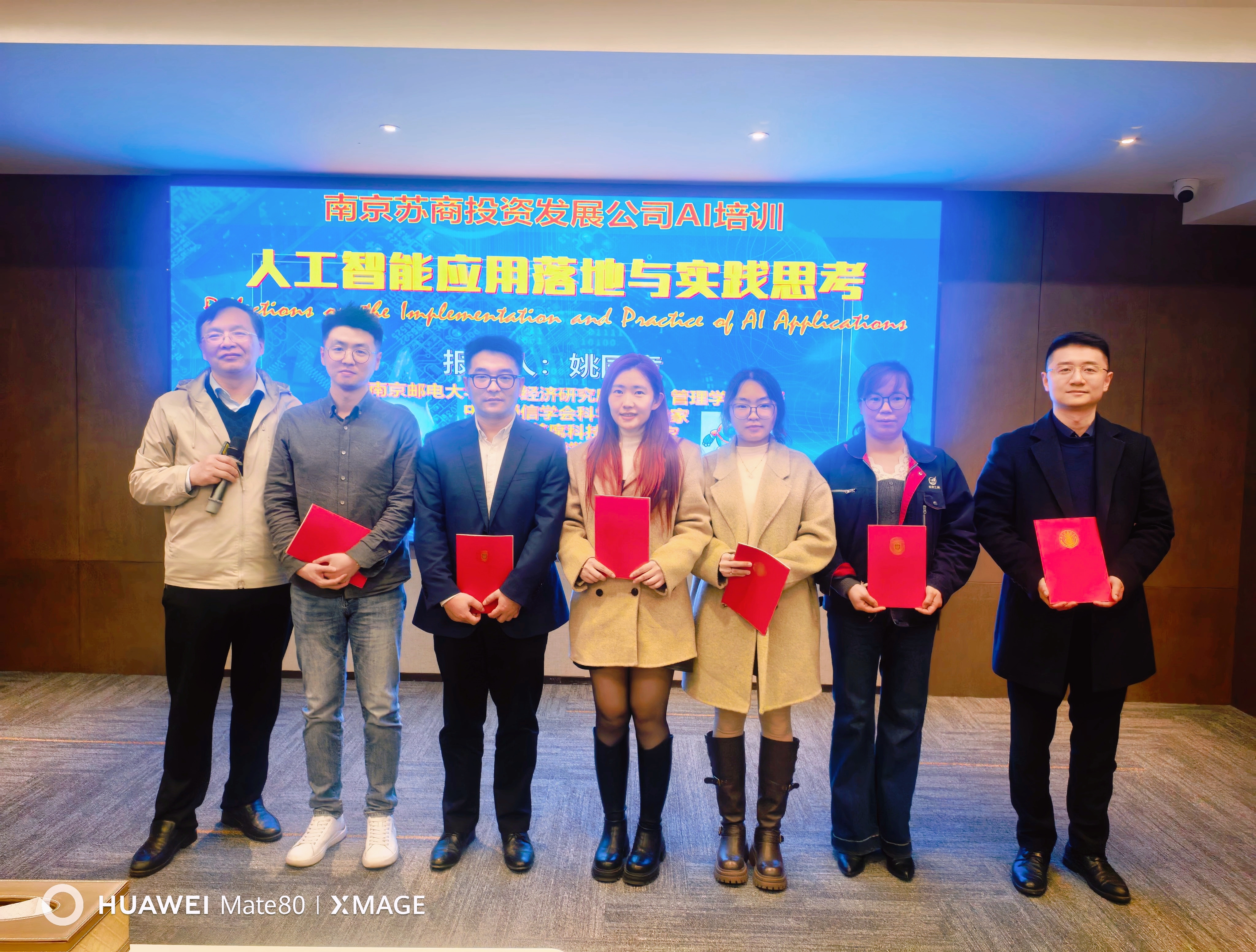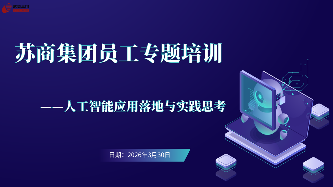 2026年3月30日下午,南京蘇商投資發(fā)展(集團(tuán))有限公司在集團(tuán)總部舉辦了一場(chǎng)以“AI人工智能應(yīng)用落地與實(shí)踐思考”為主題的專題培訓(xùn)。活動(dòng)特邀南京郵電大學(xué)數(shù)字經(jīng)濟(jì)研究所所長(zhǎng)、知名數(shù)字經(jīng)濟(jì)專家姚國(guó)章教授擔(dān)任主講嘉賓,集團(tuán)高管及各部門(mén)員工代表共計(jì)50余人參加了此次培訓(xùn)。